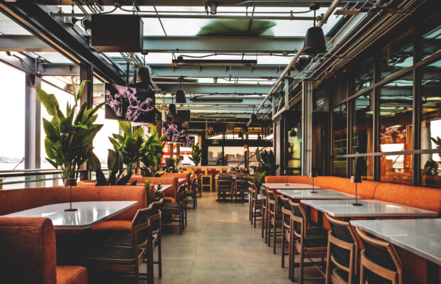 Our upper level is the perfect venue for a seated dinner or standing cocktail reception with up to 75 guests, featuring a private bar to service your party and private restrooms exclusively for your guests. Opt for an indoor, outdoor or hybrid experience (weather dependent) with waterfront views of the shipyards and downtown Vancouver.